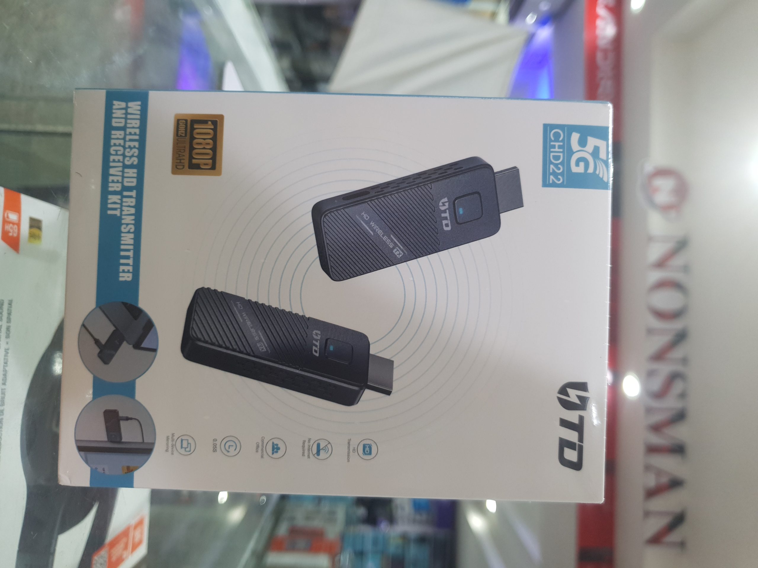 The TD CHD22 Wireless HD Transmitter and Receiver Kit is a plug-and-play solution designed to wirelessly stream 1080P Full HD video and audio from a source device (like a laptop or game console) to a display (like a TV or projector) without needing long HDMI cables.